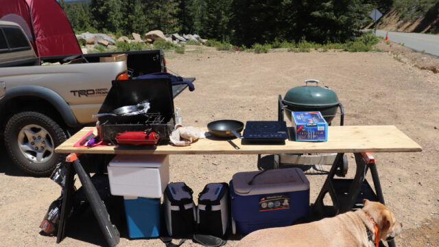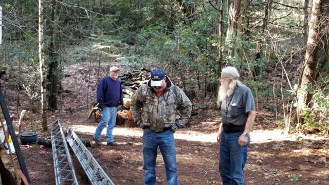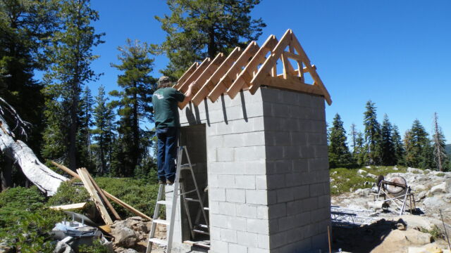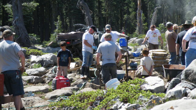 Site Construction: June 2010 to October 2010: There was one family that has a cabin in the area that allowed us to get water from the well. We took a 5k generator, cement mixer, & two 80 gal water tanks, which we pressurized with air for water flow. Another mixer was brought for a total of two for the main cement work. There was also a smaller generator once the mixers weren’t needed, to charge battery operated tools. A Ford pick-up bed trailer was used to haul equipment in, and another guy had a Toyota pick-up bed was used to get water many times. Of course, the Jeep was used too.